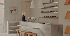 I Hempels kantine, loungeområder, auditorium, mødelokaler og udeområder er der på samme måde indrettet med nye møbler fra HOLMRIS B8, og hele vejen igennem er der tænkt i kvalitet. Lige fra Labofas Heritage Collection, lamper fra Menu, Menus Harbour Lounge Chair og Muutos Outline sofaer til Gubi Beetle barstol
