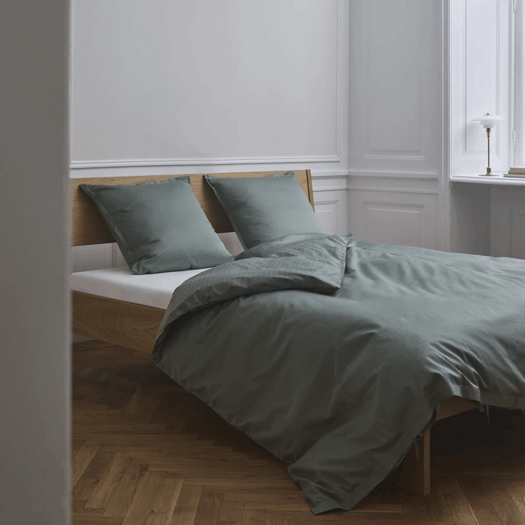 We all need a little extra sleep during the dark season. This bed linen set has you covered: It features a beautiful geometric pattern woven in glossy cotton satin for that hotel-at-home feel. Soft, breathable, and OEKO-TEX-certified.