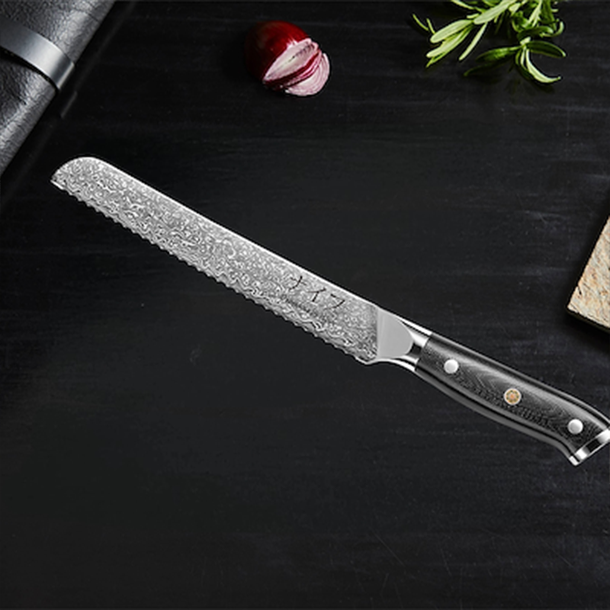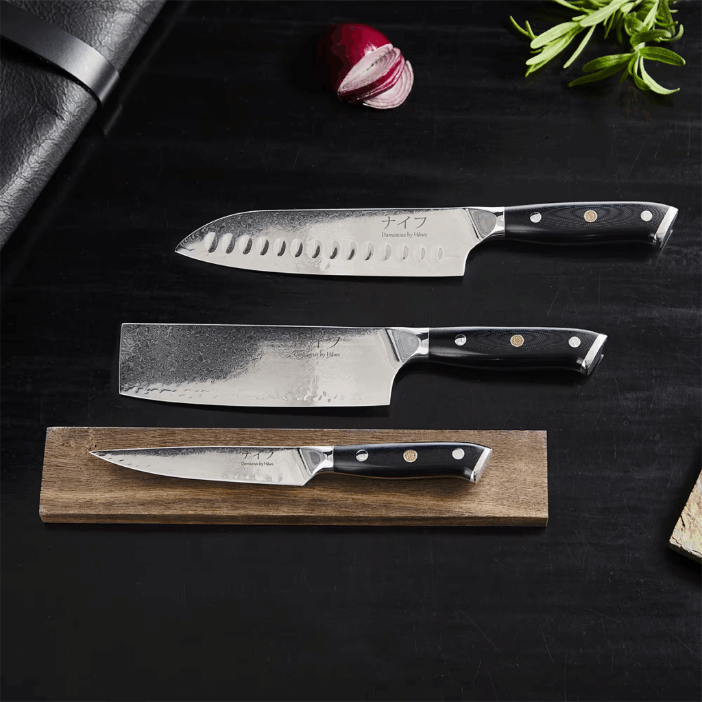 Get rid of those IKEA knives you still have lying around. It’s time to slice, dice, and chop in style with a set of beautifully crafted Damascus knives. Each knife is made from 67 layers of real Damascus steel, giving them a beautiful pattern and long-lasting sharpness.