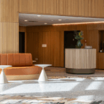 I Campushjertet, som de nye rammer kaldes, er der skabt plads til nye former for studieaktiviteter med et nyindrettet væksthus, maker space og en hyggelig fredagsbar. I indretningsprocessen har HOLMRIS B8 indgået i et tæt samarbejde med de studerende, campusledelsen og uddannelseslederne fra lærer- og sygeplejerskeuddannelsen. Her var der enighed om at forfølge ideen med at genbruge det overskydende gulv fra den gamle gymnastiksal, som HOLMRIS B8 derfor har forvandlet til bordplader og en unik bar.