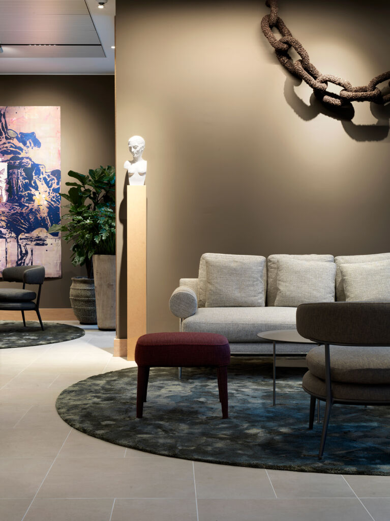 ”Vi lytter altid til kulturbærerne inden for de organisationer, vi arbejder med. Hvem er de i dag, og hvad ønsker de at blive? Vi starter normalt med et udtryk i materialer og farver og bliver enige om en palet. I dette tilfælde blev det hurtigt klart, at det skulle føles seriøst, men ikke stift. Der er noget sagligt i vores skandinaviske farver og former. Her ønskede vi netop dette, men med en dybere, fyldigere og mere intens tone,” siger Cecilia Andreasson fra Thomas Eriksson Arkitekter.