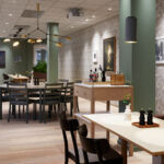 “Bistroen er husets hjerte. Der er plads til måltider, samtaler, arbejde og fest. Et sted man længes efter at samles i. Jeg følte mig barnligt stolt, da det blev tid til at flytte ind. Det er så dynamisk og modigt for et advokatkontor. Alt er nøje udvalgt. Intet er overladt til tilfældighederne.” siger Lena Enberg.